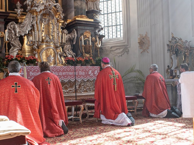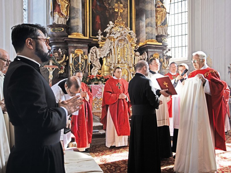Bei strahlendem Sonnenschein legten die Fratres Augustinus Pühler OT und Samuel Giuliano OT am 16. September in der Stiftskirche St. Peter und Paul zu Weyarn ihre Ewige Profess in die Hände von Prior P. Christoph Kehr OT und binden sich damit für immer an den Deutschen Orden.